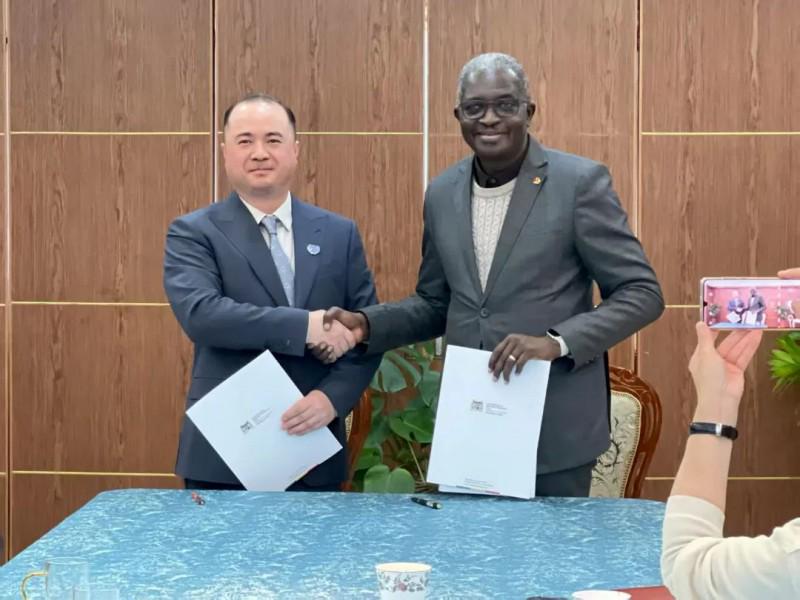 2023年8月,金健委与贝宁大使馆签订全领域合作协议,图中左一为贝宁共和国驻华大使西蒙·皮埃尔·阿多维兰德阁下