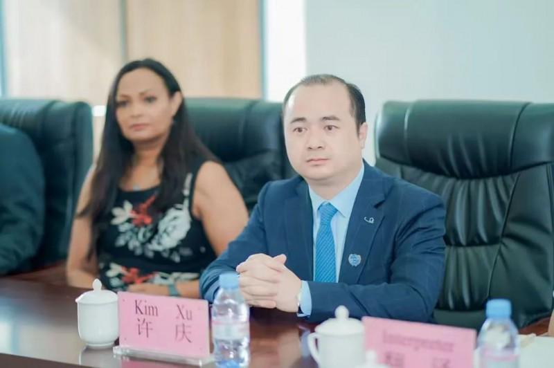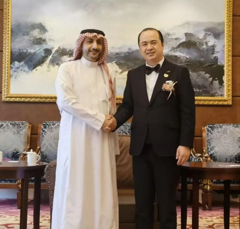 2023年4月,许庆与中国沙特总商会会长穆罕默德·艾尔·阿吉兰会谈合影