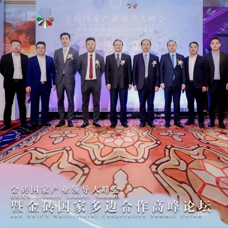 2023年4月,全国工商联原专职副主席庄聪生(左五)、中华人民共和国国务院国有重点大型企业监事会原主席季晓南(左六)出席金砖国家产业领导人峰会暨金砖国家多边合作高峰论坛并致辞