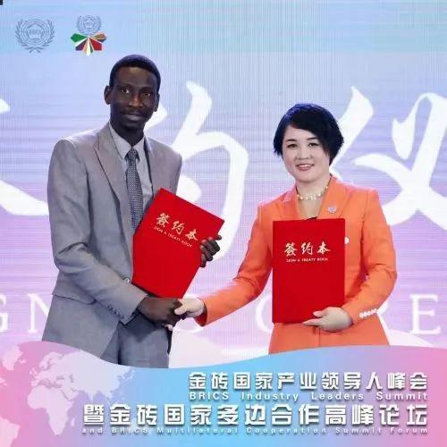2023年4月,在金砖国家多边合作高峰论坛上,金健委与尼日尔驻华大使馆达成《NGO慈善捐助合作备忘录》《尼日尔投资采购合作备忘录》签约。图左为尼日尔公使参赞哈比布·阿达穆。