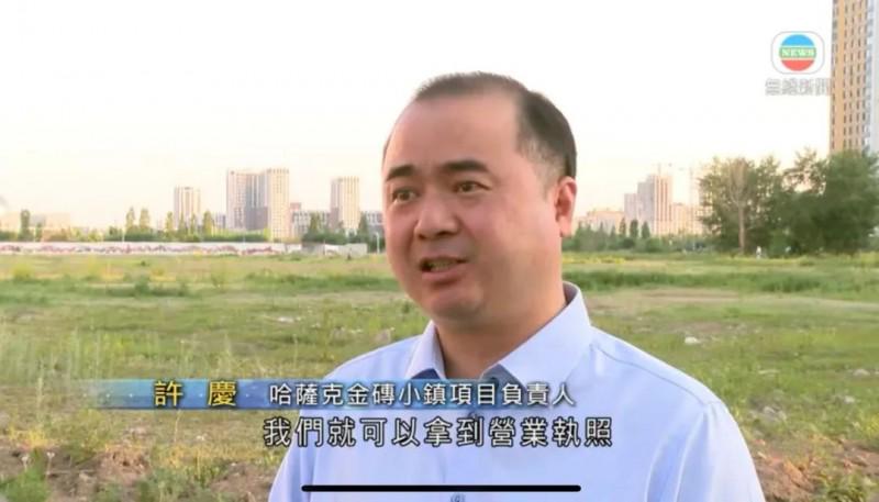 2025年7月,在哈斯克斯坦首都阿斯塔纳,许庆接受TVB(香港电视台无线新闻)采访介绍哈萨克金砖小镇项目