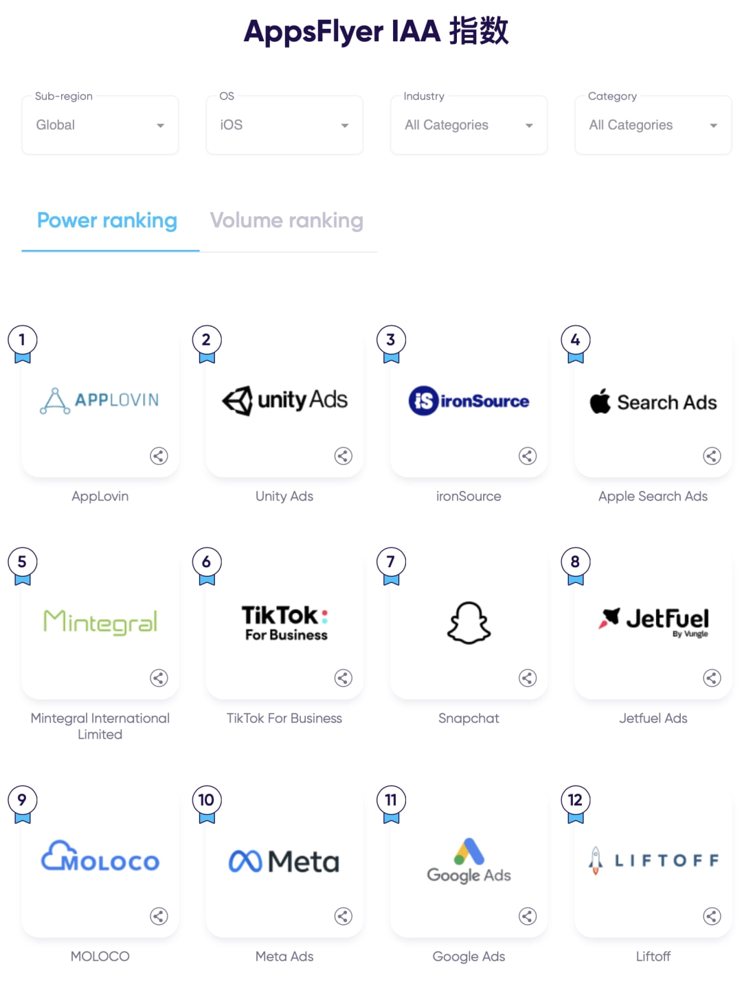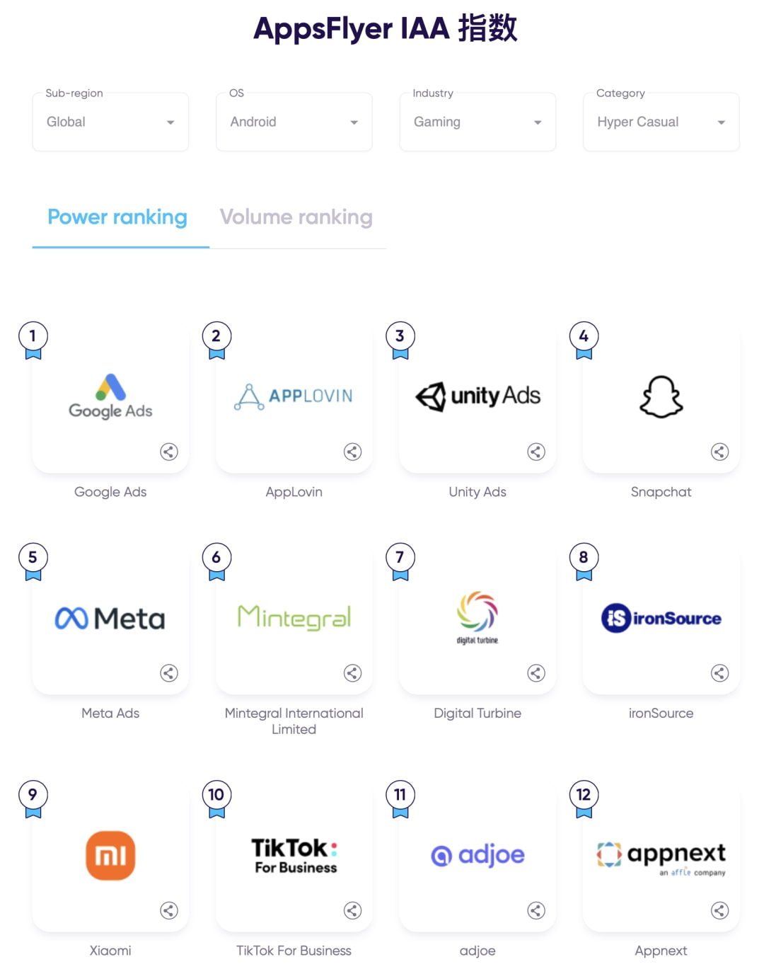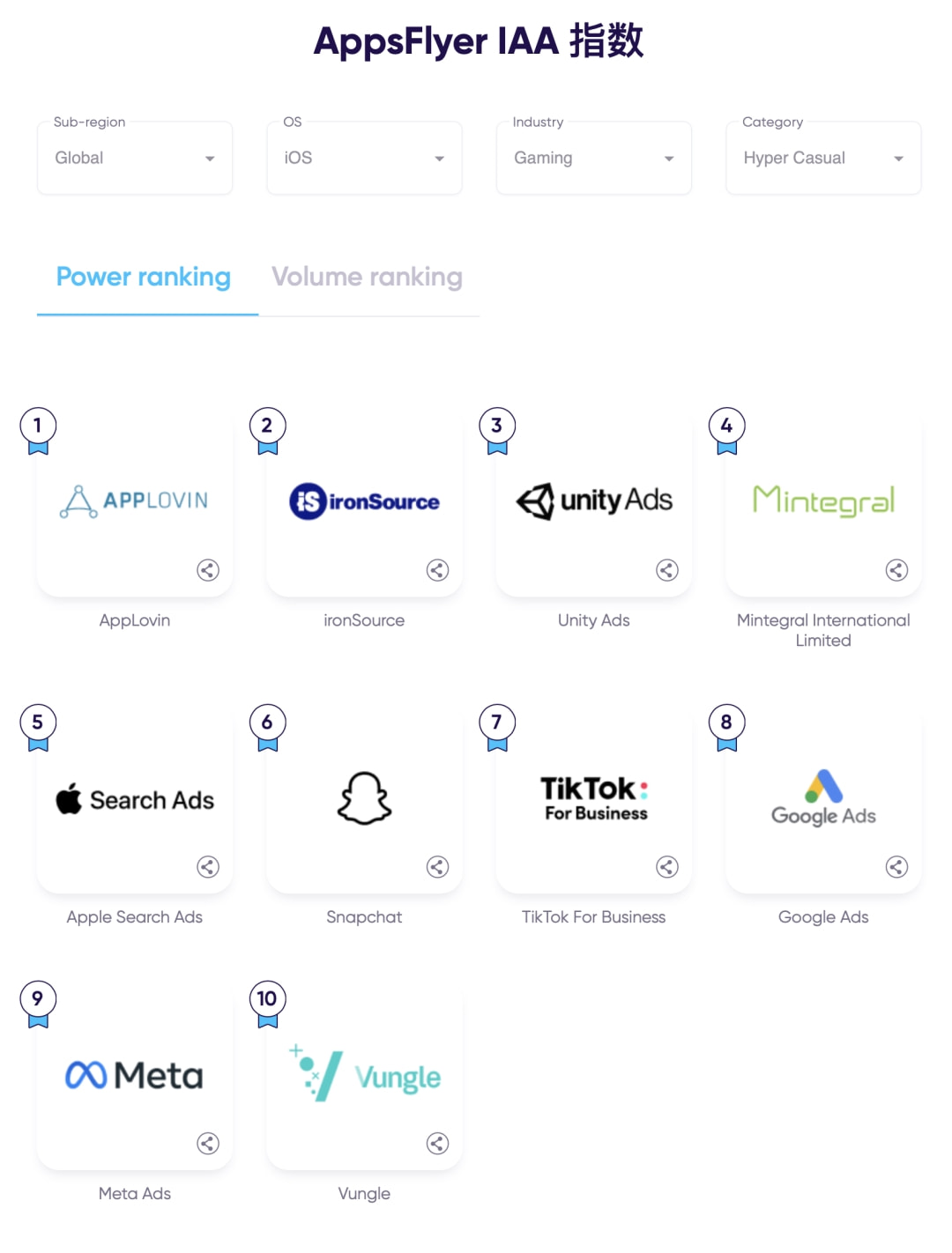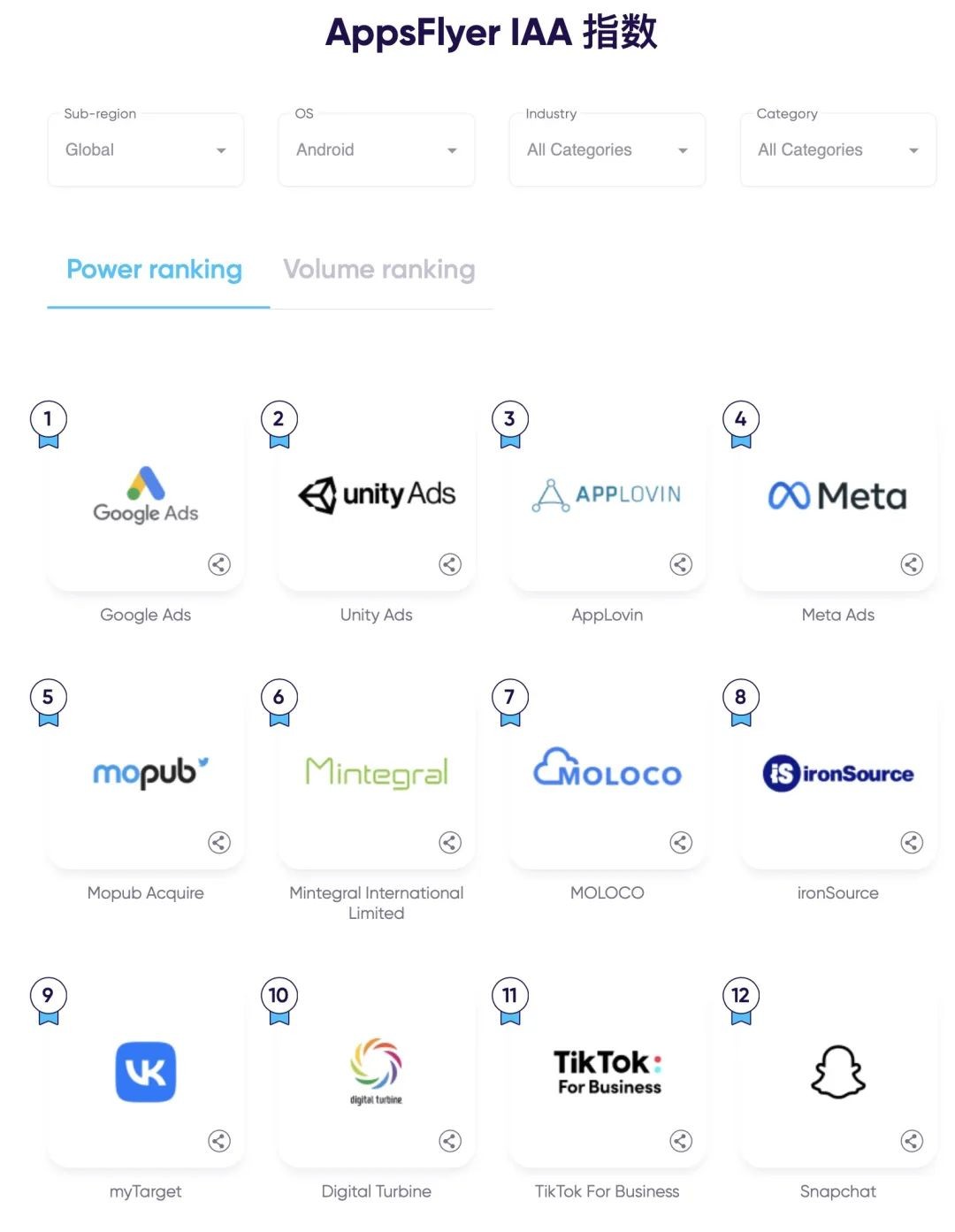 在实力榜单上,Unity Ads上升了5位,ironSource上升了3位,在积极的并购扩张之下,这两者的转化能力都有了明显提升。