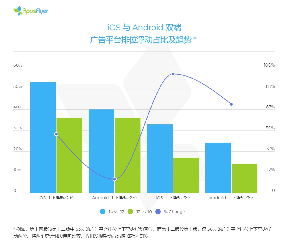 1、 榜单总体状况:25%的广告预算从iOS平台流动到安卓端。