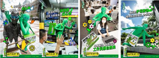 繁忙的CBD,上班族在烈日下行色匆匆,小绿人伸手挺了一下,送去清凉与力量;
