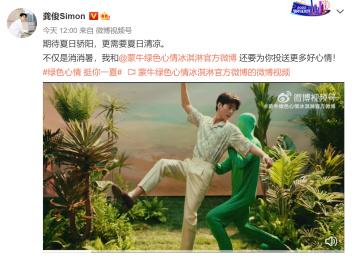 代言人龚俊也和小绿人全面联动在一起,当天,除基础互动外,还为粉丝准备了特别福利:在线下各地设置专属粉丝冰柜,打卡即可免费获得龚俊同款雪糕;参与现场互动还可能获得龚俊周边、海报等福利,更有机会抽奖获得龚俊限量签名照。