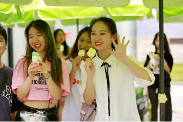视频发布当天,小绿人从龚俊的视频中走上成都街头,在成都最具人气的网红大熊猫打卡点亮相,引来许多路人围观。小绿人一手抱着人们熟悉的绿色心情雪糕,一手撑住大熊猫拿着自拍杆的手臂,摆出力挺大熊猫的姿势,将主题“绿色心情 挺你一夏”真实演绎。