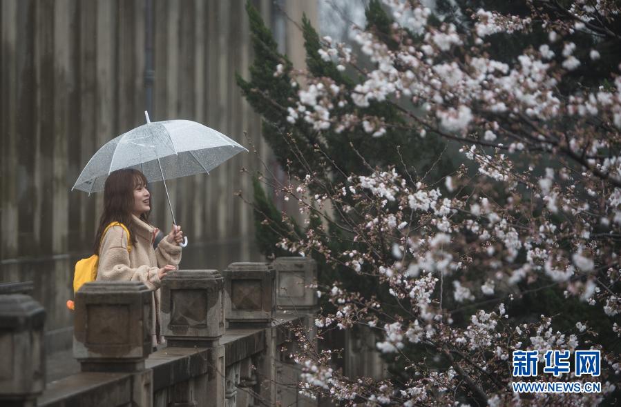 3月8日,游客在武汉大学赏花。