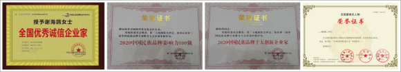 2020年7月16日谢海鸽获得中国企业信用联合评价中心授予全国优秀诚信企业家;
