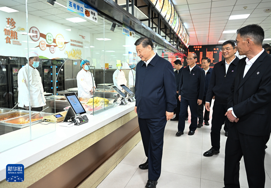 6月18日至19日,中共中央总书记、国家主席、中央军委主席习近平在青??疾?。这是18日下午,习近平在果洛西宁民族中学食堂察看学生就餐条件。新华社记者 谢环驰 摄