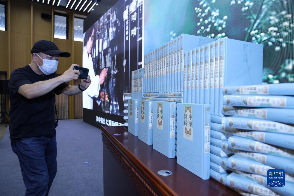 7月13日,一位摄影师在拍摄发布的《中华医藏》图书。新华社记者 殷刚 摄