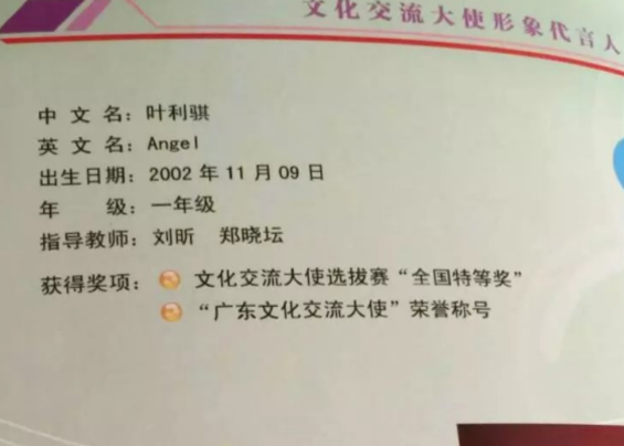(图二、中国文化交流大使优秀参与者“叶利骐”)