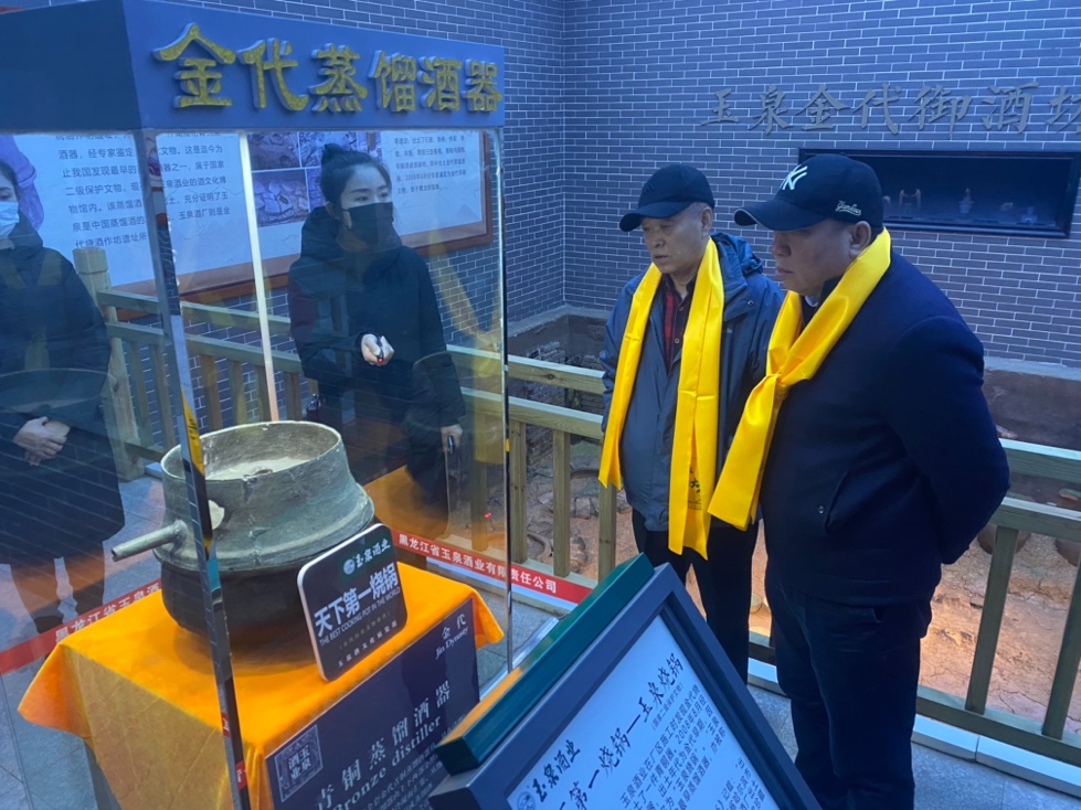 ? 随后,嘉宾们还参观了玉泉酒文化展览馆,对玉泉酒的发展历程有了进一步的了解。玉泉酒延续近千年的酿酒文化,传承百年酿造工艺,金代中早期文物“天下第一烧锅”的出土,更为玉泉镇是中国蒸馏酒发祥地之一的说法增添了有力证据。嘉宾们纷纷表示,玉泉酒的辉煌历史令人感慨,其酿造工艺令人惊叹,玉泉酒业深耕白酒酿造工艺,厚植品牌文化建设,不愧为东北高品质白酒典范。?