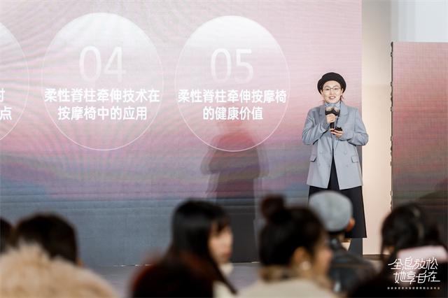 她表示,脊柱健康是世卫组织认为易被忽略的十项健康问题之一,将柔性脊柱牵伸技术应用于按摩椅,对通督强脊,升提阳气;松筋散结,舒筋活络;行气活血,温经散寒;缓解疲劳,促进睡眠都有着积极作用,顾家家居将该技术应用于欧米伽按摩椅,让按摩椅做到“懂你身型不盲按”,是真正关心女性的科技突破和产品创新。