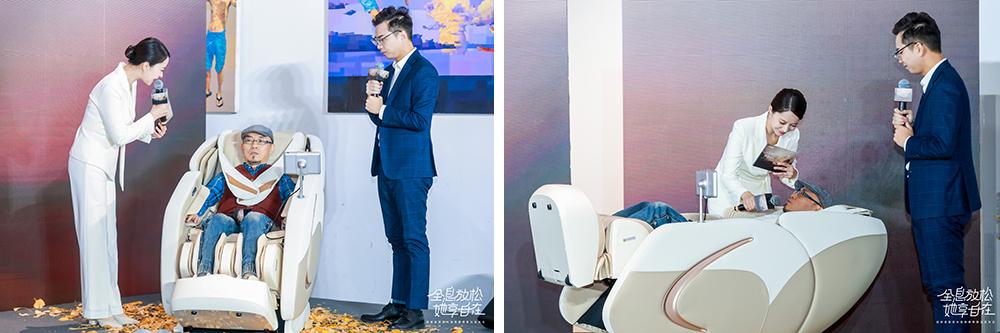 在产品体验区,多名女性争相体验,工作人员认真询问女性体验者的使用感受,在经过舒适体验之后,欧米伽按摩椅获得了女性体验者的一致好评。
