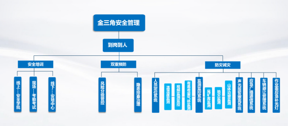 金三角安全管理法及其落地工具从“培训教育、双重预防、防灾应急”三个维度实施人、机、物、料、环安全生产全方位、全过程,全覆盖控制,把风险管控停在隐患产生前,把隐患消除停在事故发生前。通过一体化安全培训,从线上安全学院、现场考勤考试、线下安培中心三位一体实现一线岗位安全素质提升。通过信息化手段,风险分级到岗位,隐患排查到岗位,实现一线岗位员工的安全自主履职。应用技防技术,让一线岗位员工在应急信息接收和处理的每个环节都及时正确,实现安全应急感知到岗位。最终实现数字赋能,建立健全知识库、风险库、隐患库、绩效库、档案库等大数据运营中心,让领导心中有数,让员工心中有底。目前已在紫金矿业、中国黄金、中国五矿安徽开发矿业等成功实施,并得到企业、政府和社会普遍认可,央视跟踪报道三年。
