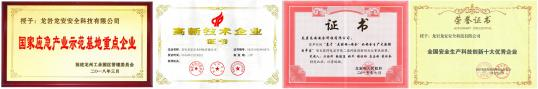 “一分耕耘,一分收获”,龙岩龙安安全科技有限公司凭借着过硬的产品质量与先进的科技水平,数年内高歌猛进,收获了各路消费者的一致好评,安标5项,专利24项,软著15项,为中国科技安全行业再书一份华章。龙岩龙安安全科技有限公司2011年荣获龙岩市科学技术进步奖一等奖、2012年荣获福建省科学技术进步奖三等奖和6.18海峡职工创新成果银奖;2013年荣获国家安监总局“全国安全生产科技创新十大优秀企业”的称号,2014年荣获第二届福建创新创业大赛三等奖、2019年被授予高新技术企业证书与国家应急产业示范基地重点企业称号,并以“秉持匠心精耕细作”的企业精神,在2020年受邀参加《信用中国》栏目采访。