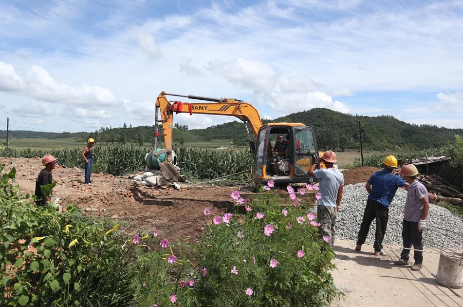 2023年8月16日,吉林舒兰,工人在现场施工。8月初,吉林省舒兰市东北部出现入汛以来最强降雨过程,多个村镇民房受损。现当地灾后住房重建(修缮)工作已经启动,采取分散重建、集中重建及货币化安置等多种方式,对受灾户实施分类安置。视觉中国 资料图